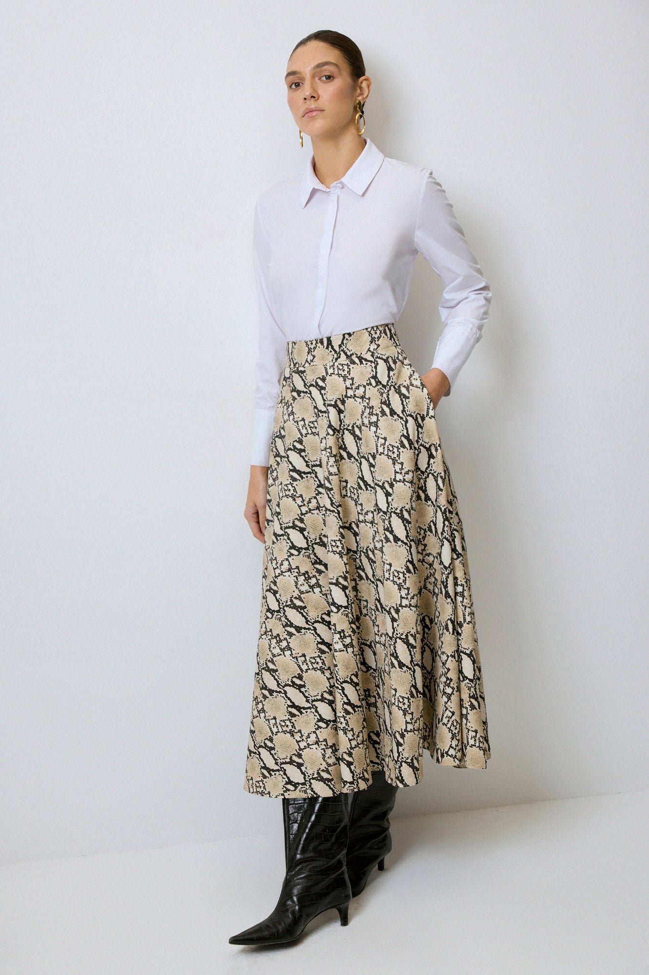 Be the first to review “A CUT PATTERNED TABARDINE SKIRT”
